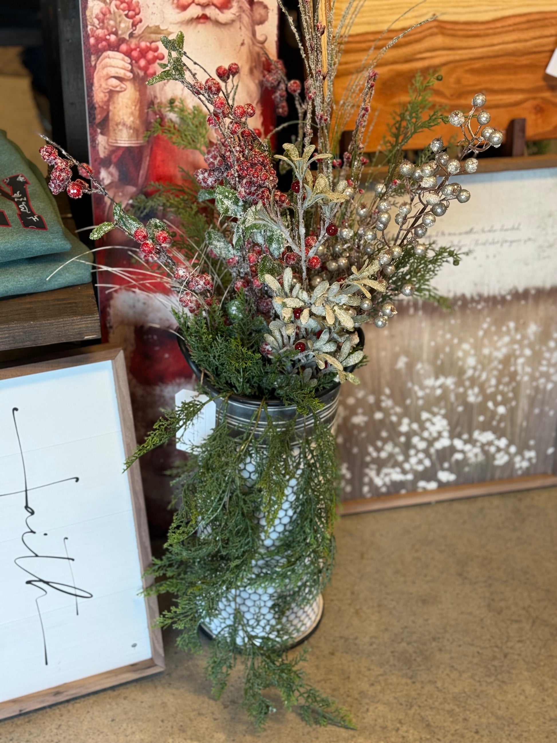 Christmas buckets are the perfect addition to your Christmas decor this year! Priced as a whole, stems may differ in each bucket.