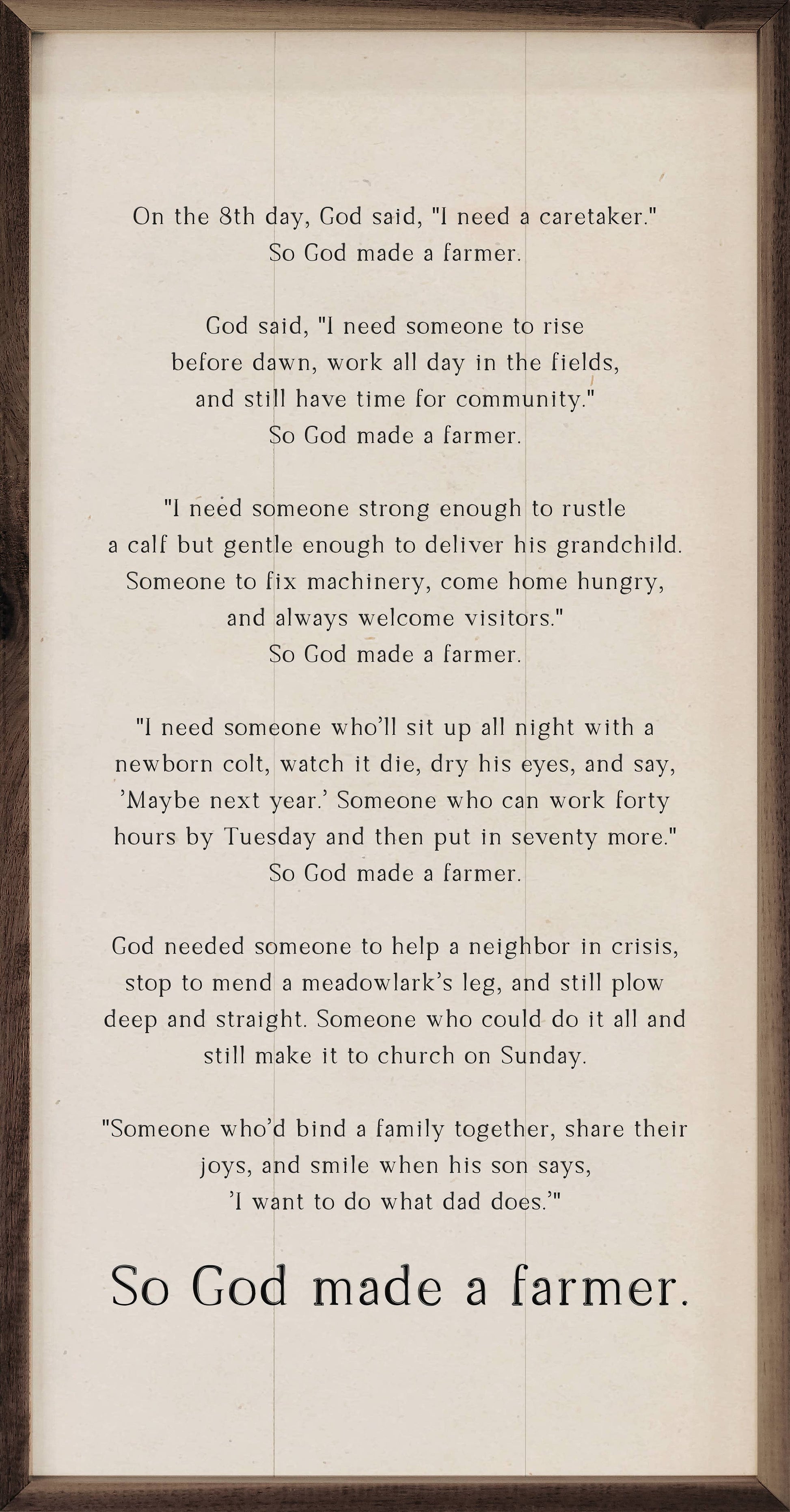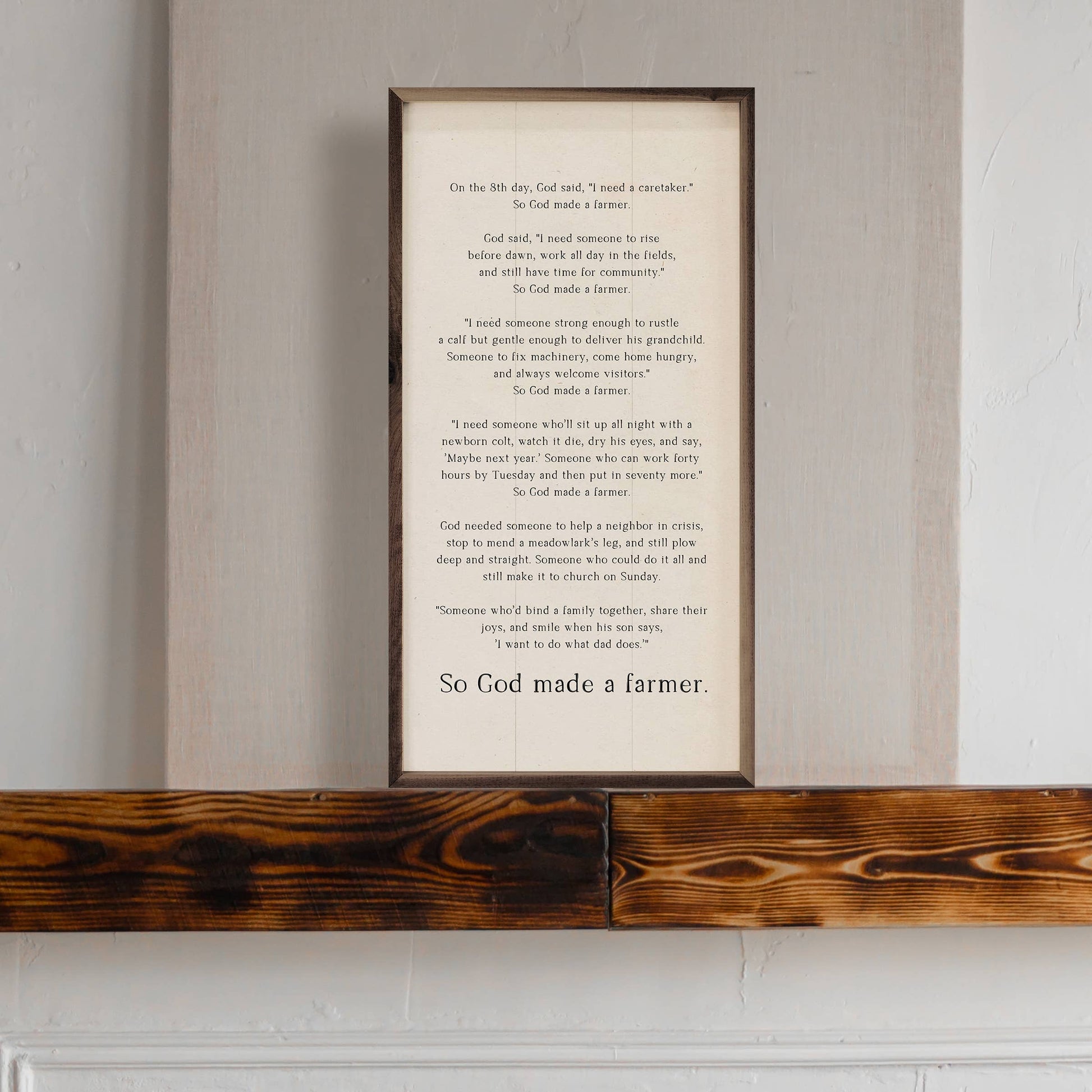 Featuring a solid wood insert with intricate, rustic farm-inspired designs, this piece is framed in rich walnut to showcase the natural wood grain. Its charming craftsmanship and down-to-earth appeal make it a perfect addition to any farmhouse décor, offering timeless style and quality.