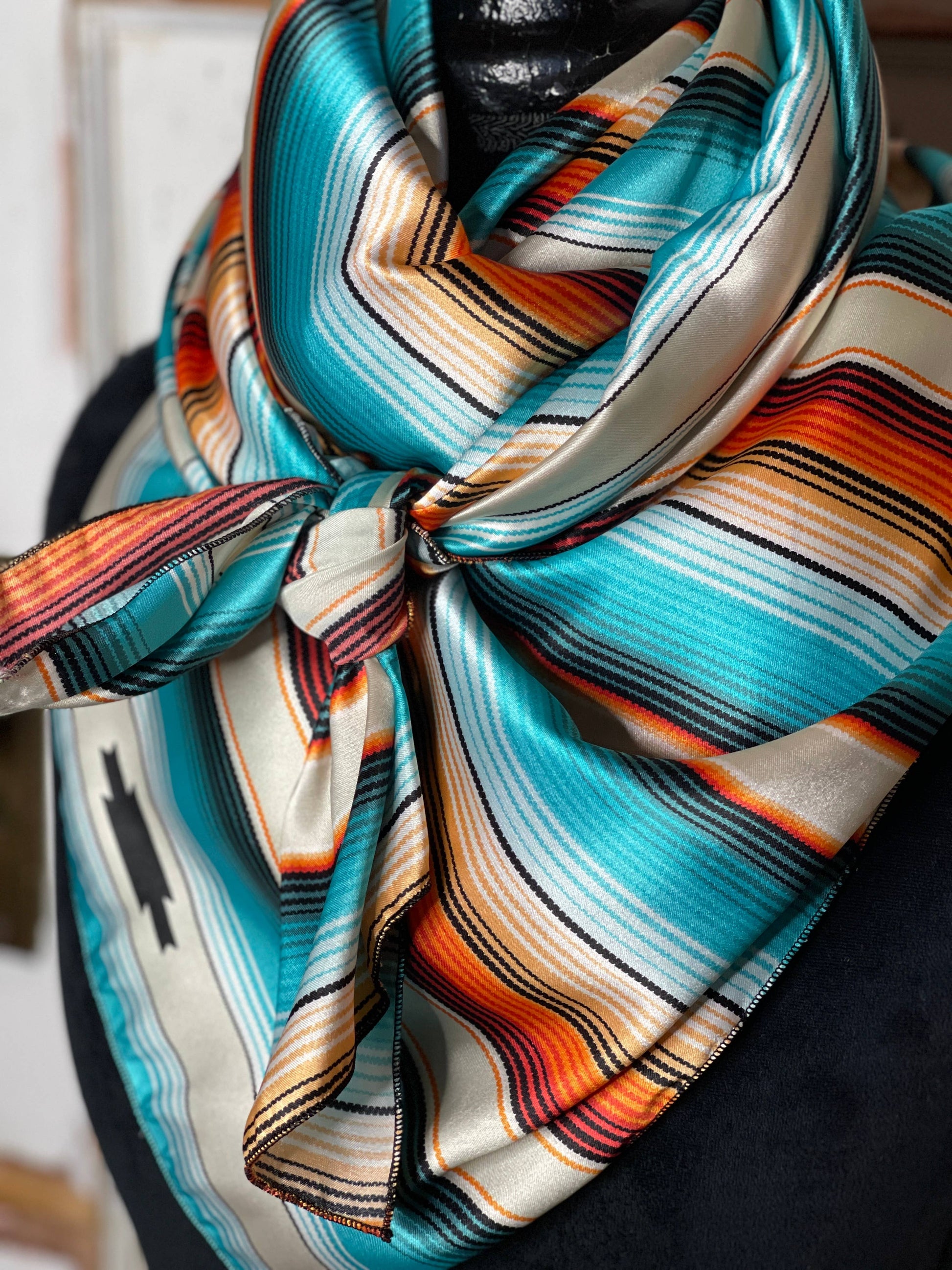 Turquoise and Rust Striped Wild Rag